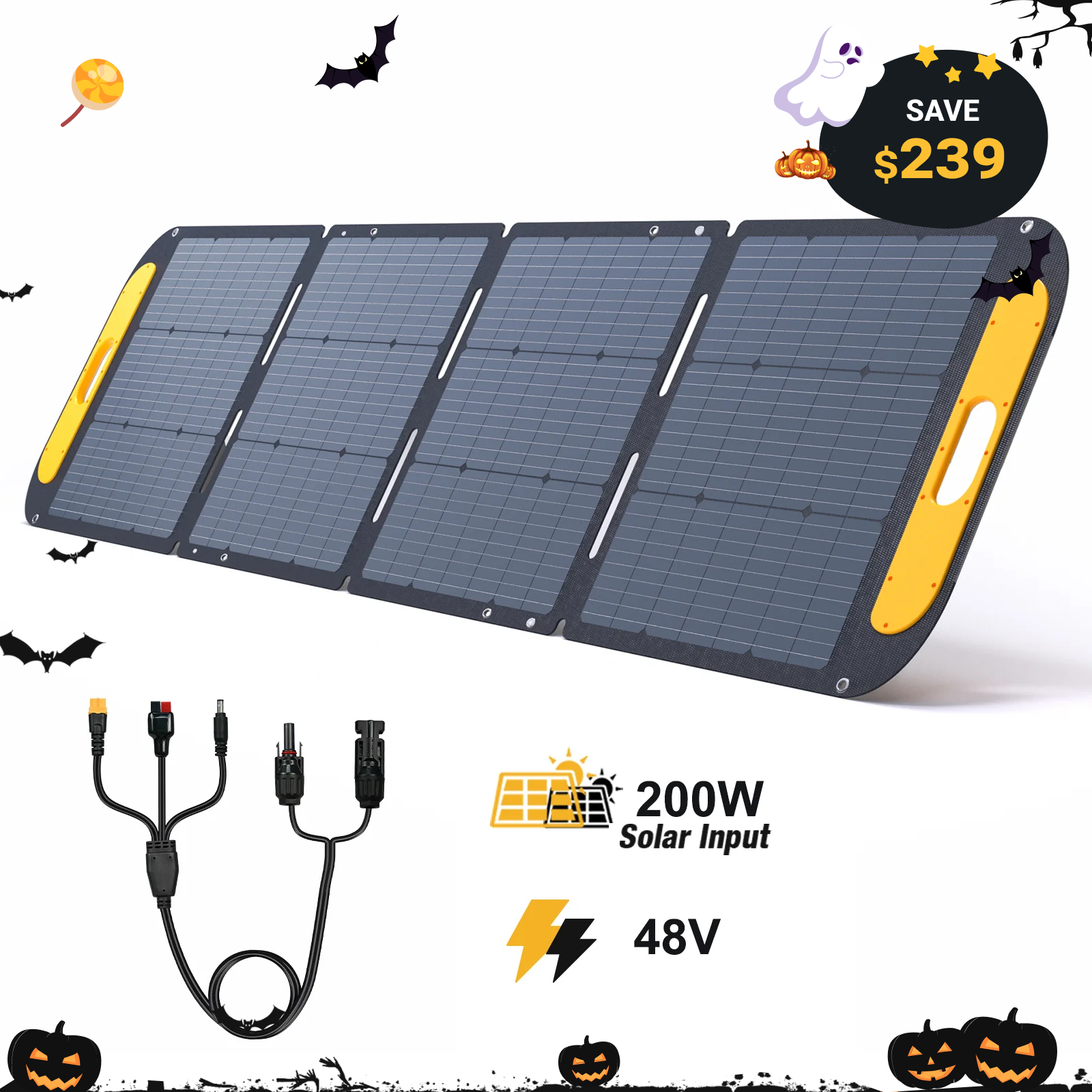 - Included Accessories: Comes with 1 VTOMAN VS200 Pro 200W/48V solar panel, 1 MC-4 to Anderson/XT60/DC5521 adapter, and a user guide.